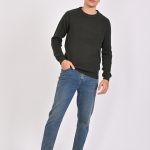 Slim fit shirt featuring lapel collar and long sleeves with buttoned cuffs. Front button closure.